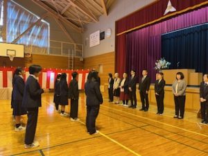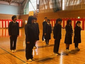 川湯中学校では2名の着任者がいました。川湯の地域の良さをたくさん知ってほしいですね。生徒会代表から、あたたかい挨拶がありました。